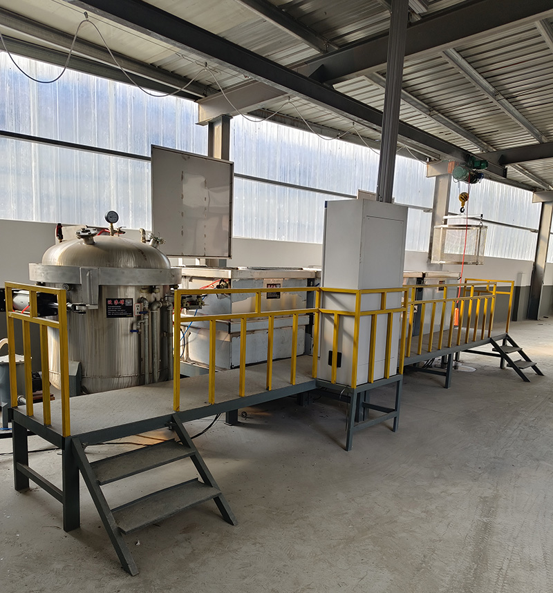 ●干真空處理:開動真空泵,真空壓力在-0.098mpa左右,用真空把零件微孔或裂紋內(nèi)的空氣(或水、油等)抽出,抽真空保壓時間為10分鐘。